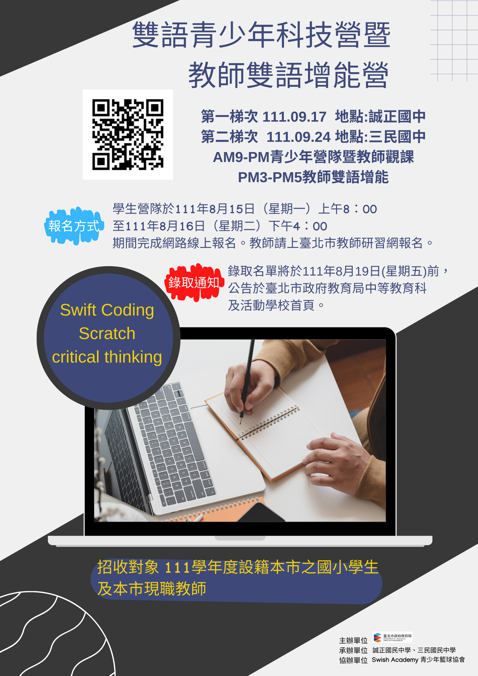 (二)教師增能營:以場次為單位,111年8月18日(星期四)前上臺北市教師研習網報名。