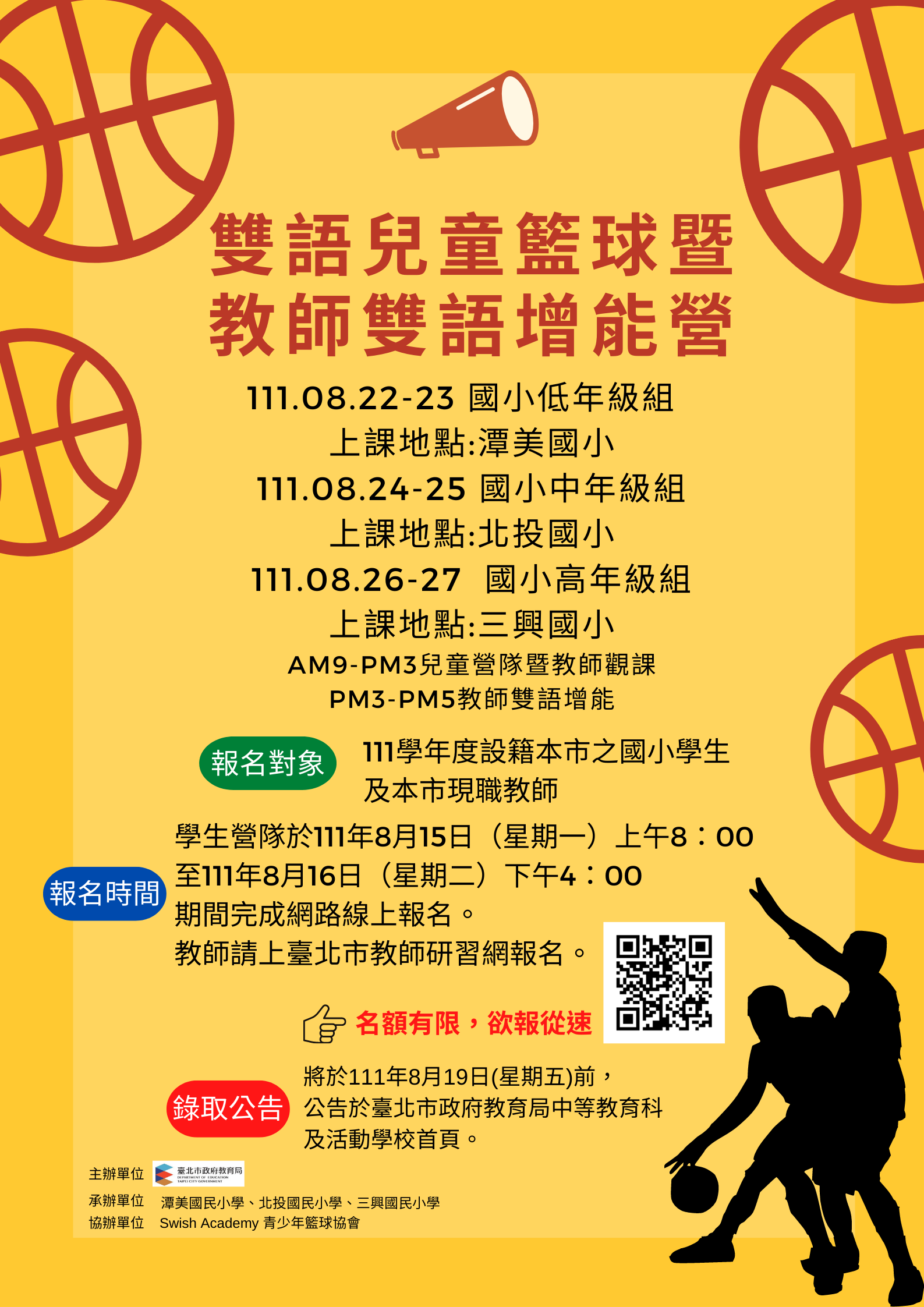(一)雙語學生籃球營:設籍本市之國小學生。
