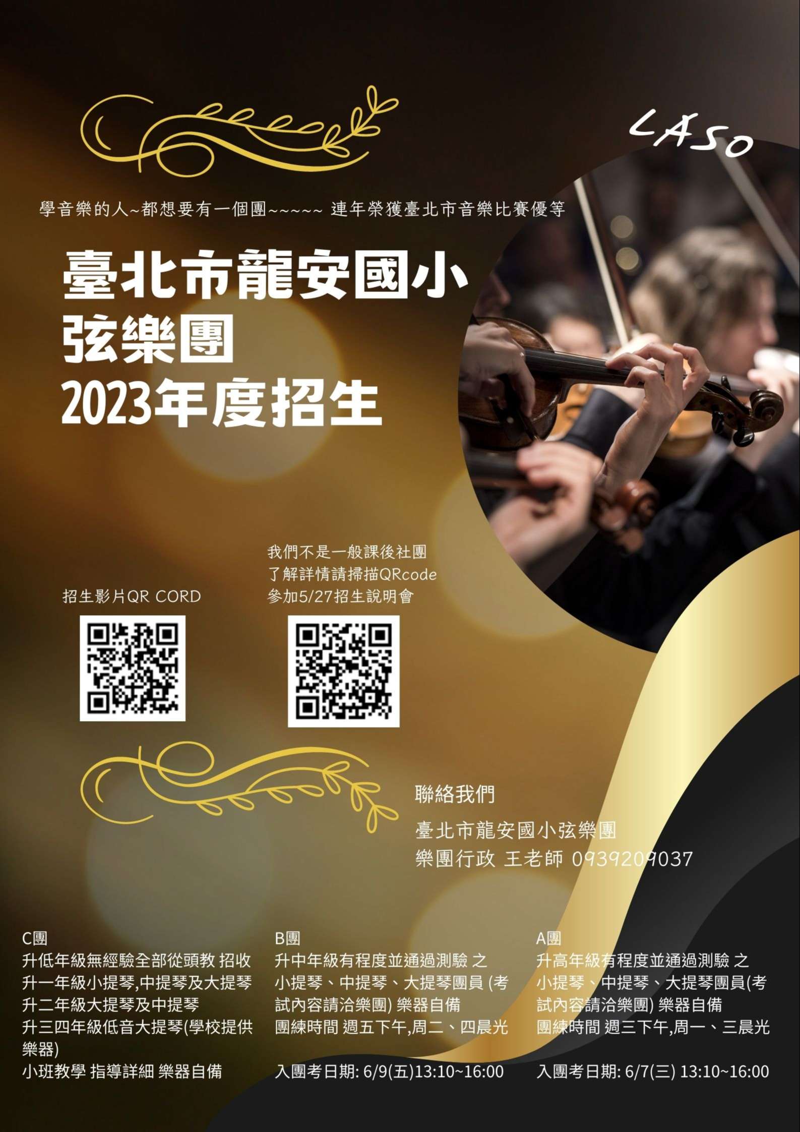 二、112年五月27日(六)上午10時將於本校弦樂團教室舉行2023樂團秋冬招生說明會,有興趣報名者,請掃文宣中QRcode報名參加。