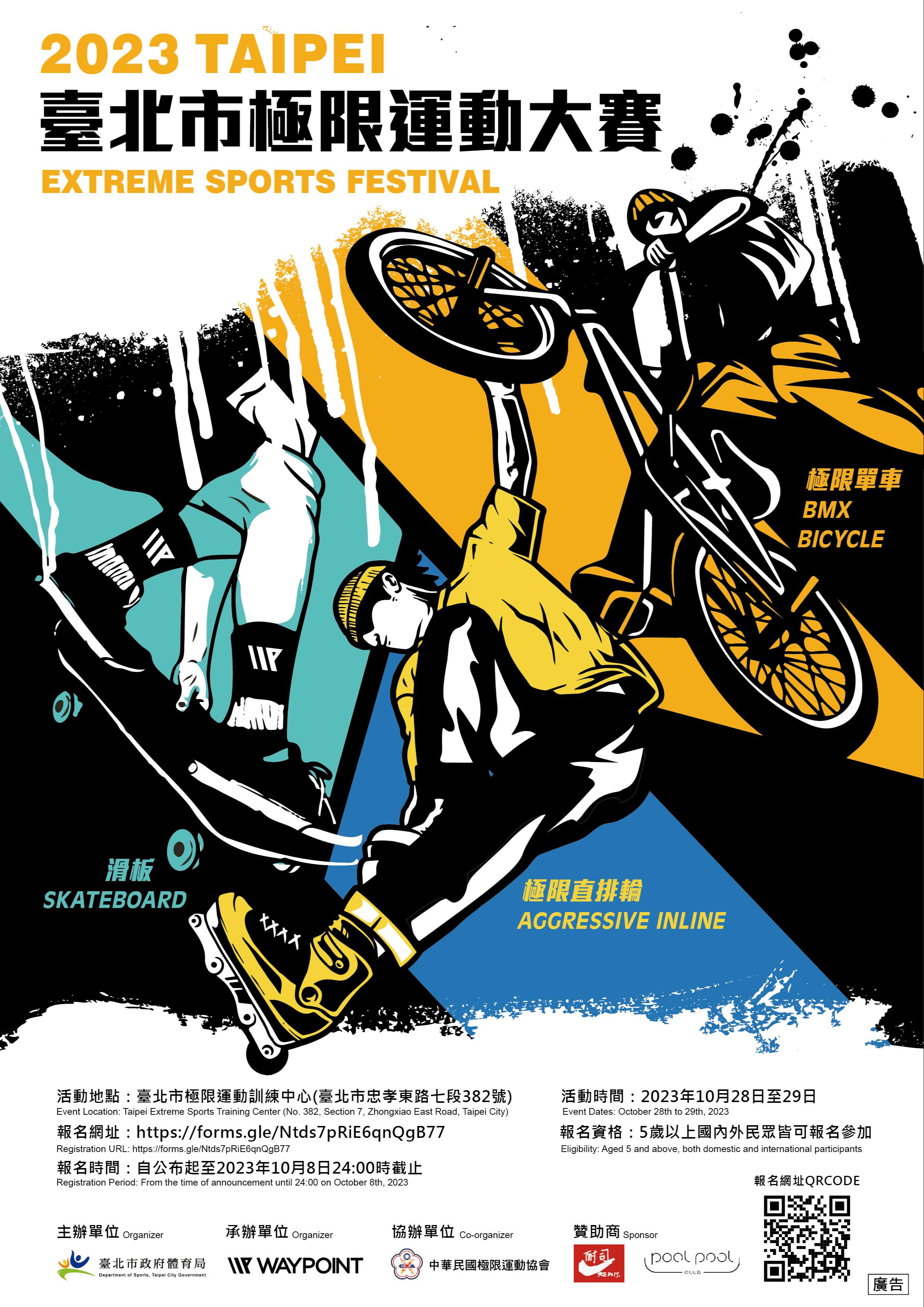 一、旨揭活動由本局主辦,威整合運動股份有限公司承辦,訂於112年10月28日至29日(星期六、日)假臺北市極限運動訓練中心舉辦,自即日起至10月8日24時開放報名。