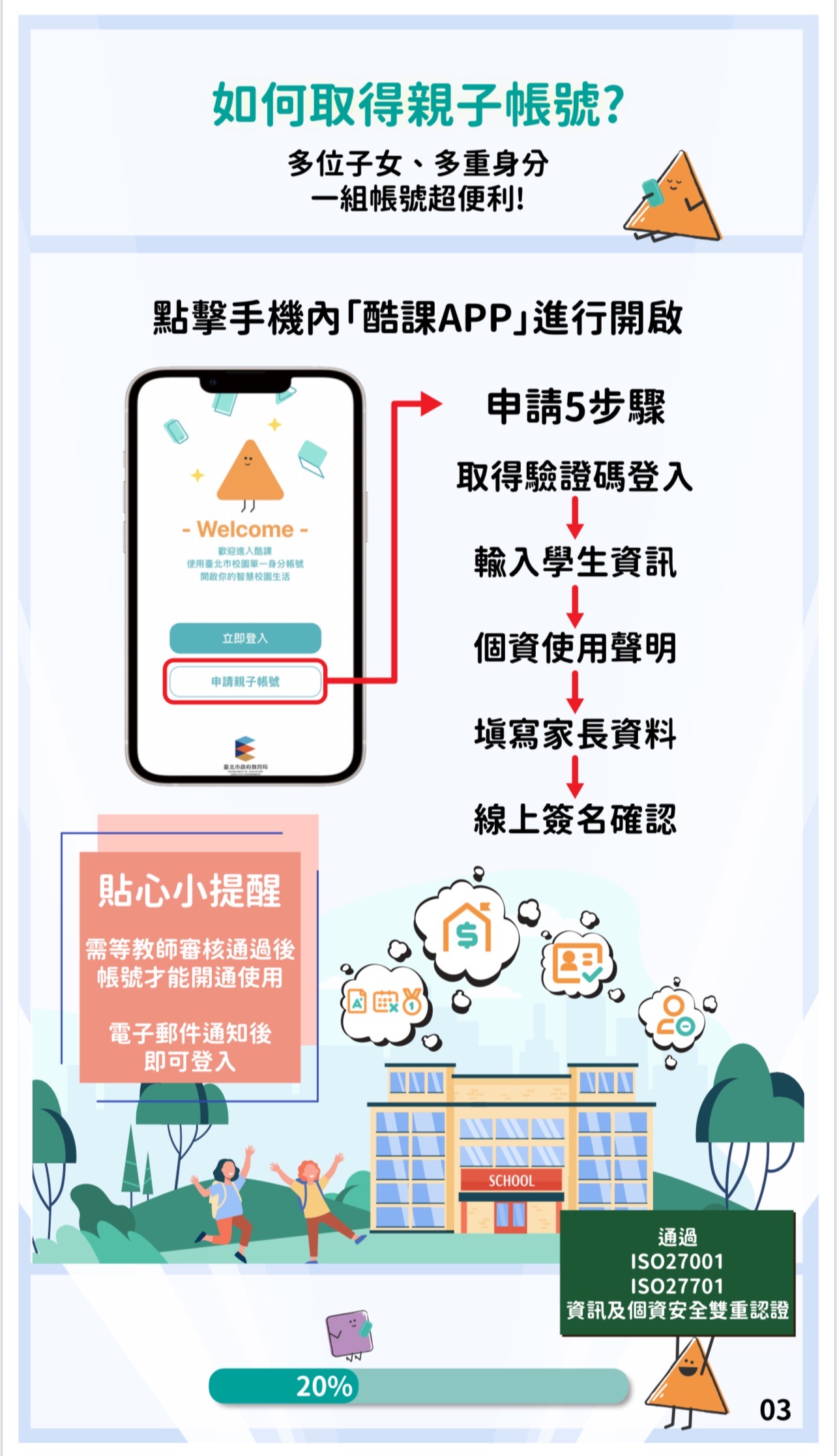 鼓勵家長在參加學校日前下載臺北酷課APP進行綁定,