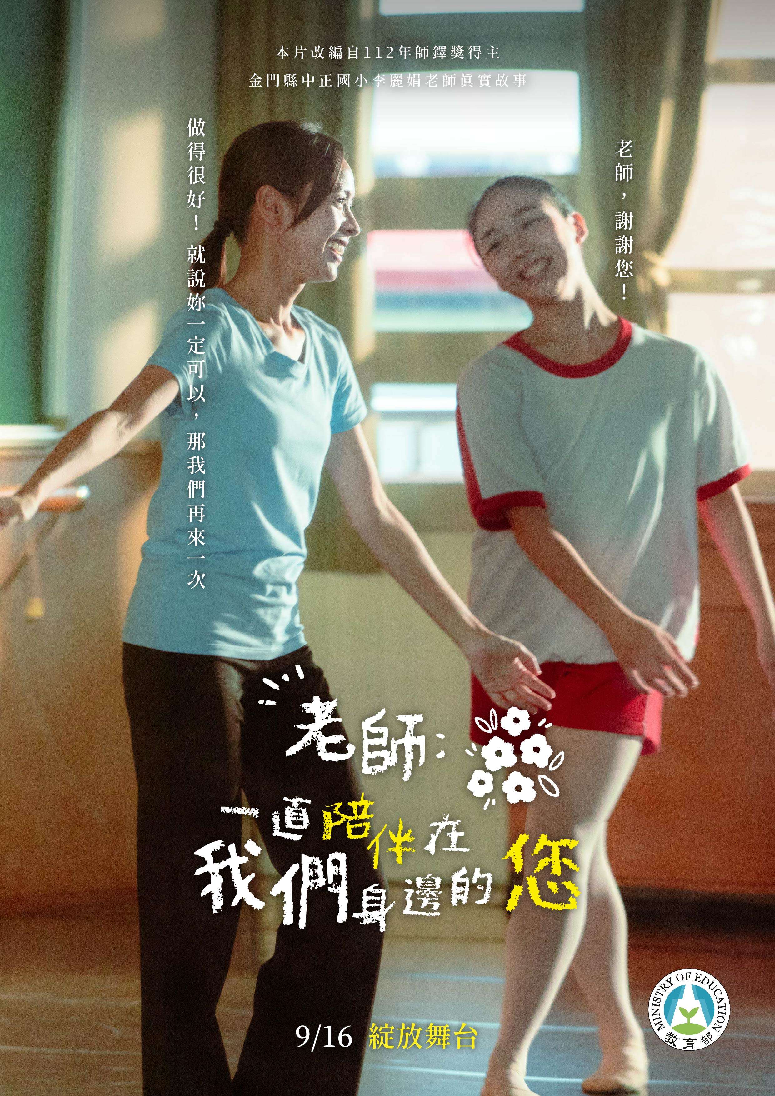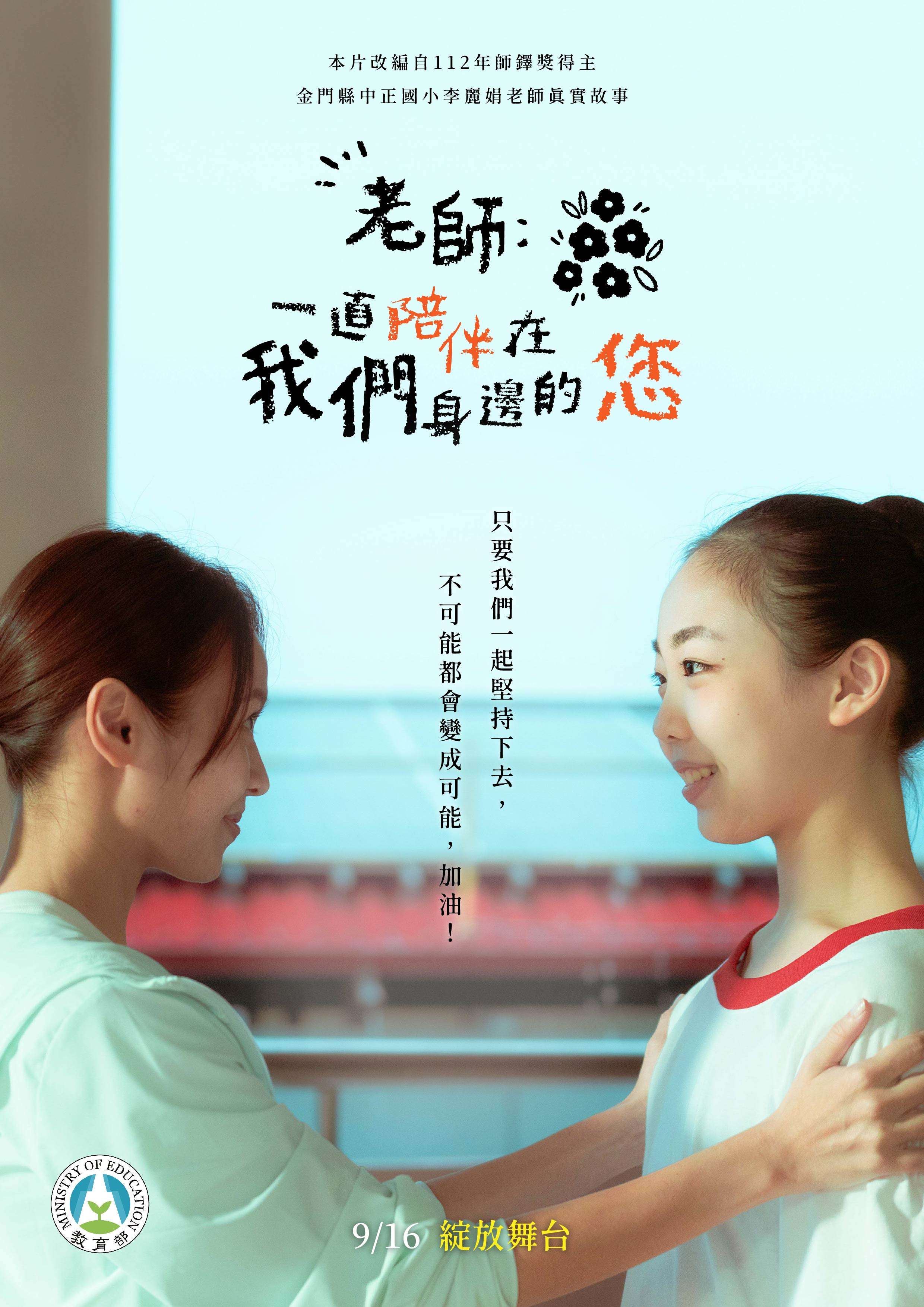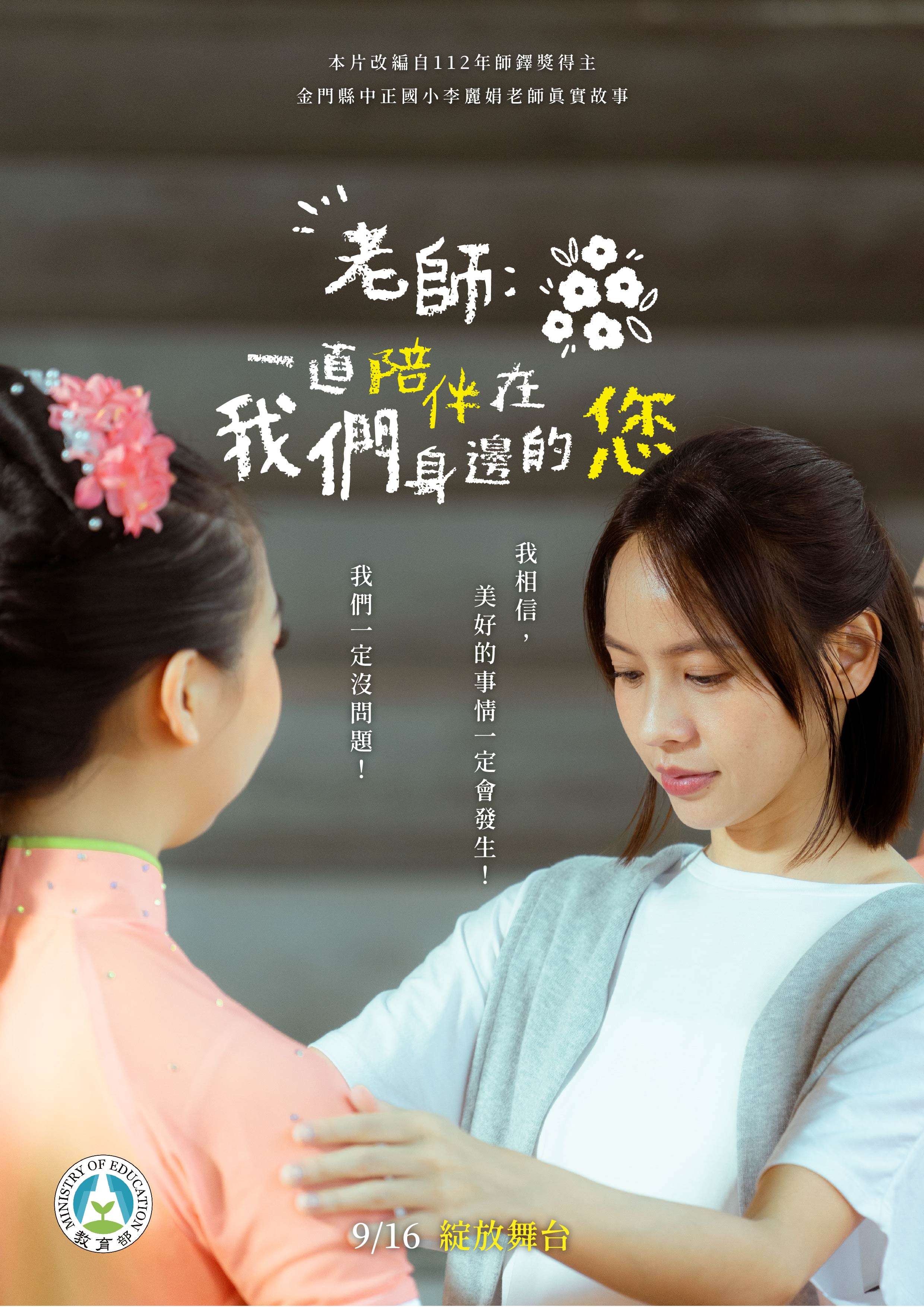 一、本片改編自師鐸獎得主金門縣中正國小李麗娟老師的經歷,透過教師與學生共同努力、成長之過程,展現教育及陪伴,帶來的改變與力量;本片由知名演員黃姵嘉領銜主演,藉由她與學生的真情演繹,傳遞了「是老師,讓不可能成為可能」的核心訊息,期許眾能感受到老師無條件的默默付出,體會老師的辛勞,進而向師長們表達最真摯的感謝。
