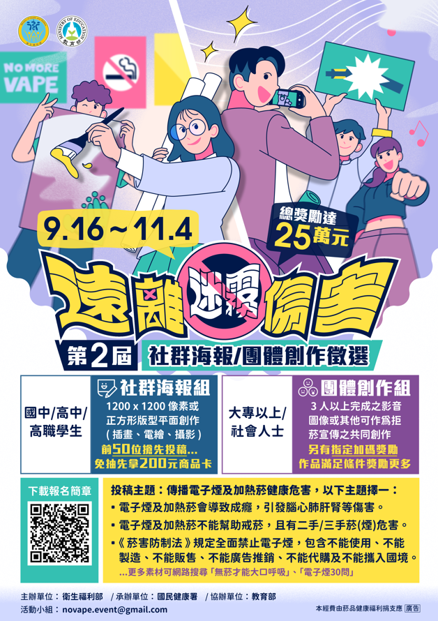 1、社群海報組:具中華民國國籍並在中華民國設籍,現正就讀國中/高中/高職學生皆可參加。