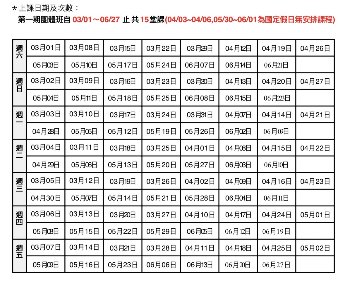 *上課時段:平⽇課程為 A 時段,假⽇課程分為 A、B 兩個時段,請擇⼀時段報名。