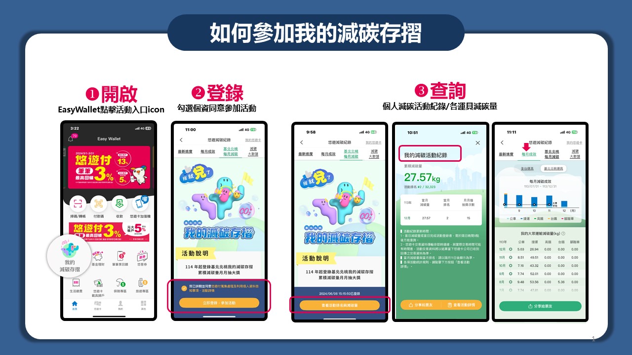 定減碳量即可登錄兌換獎項,提高民眾參與誘因,活動辦
