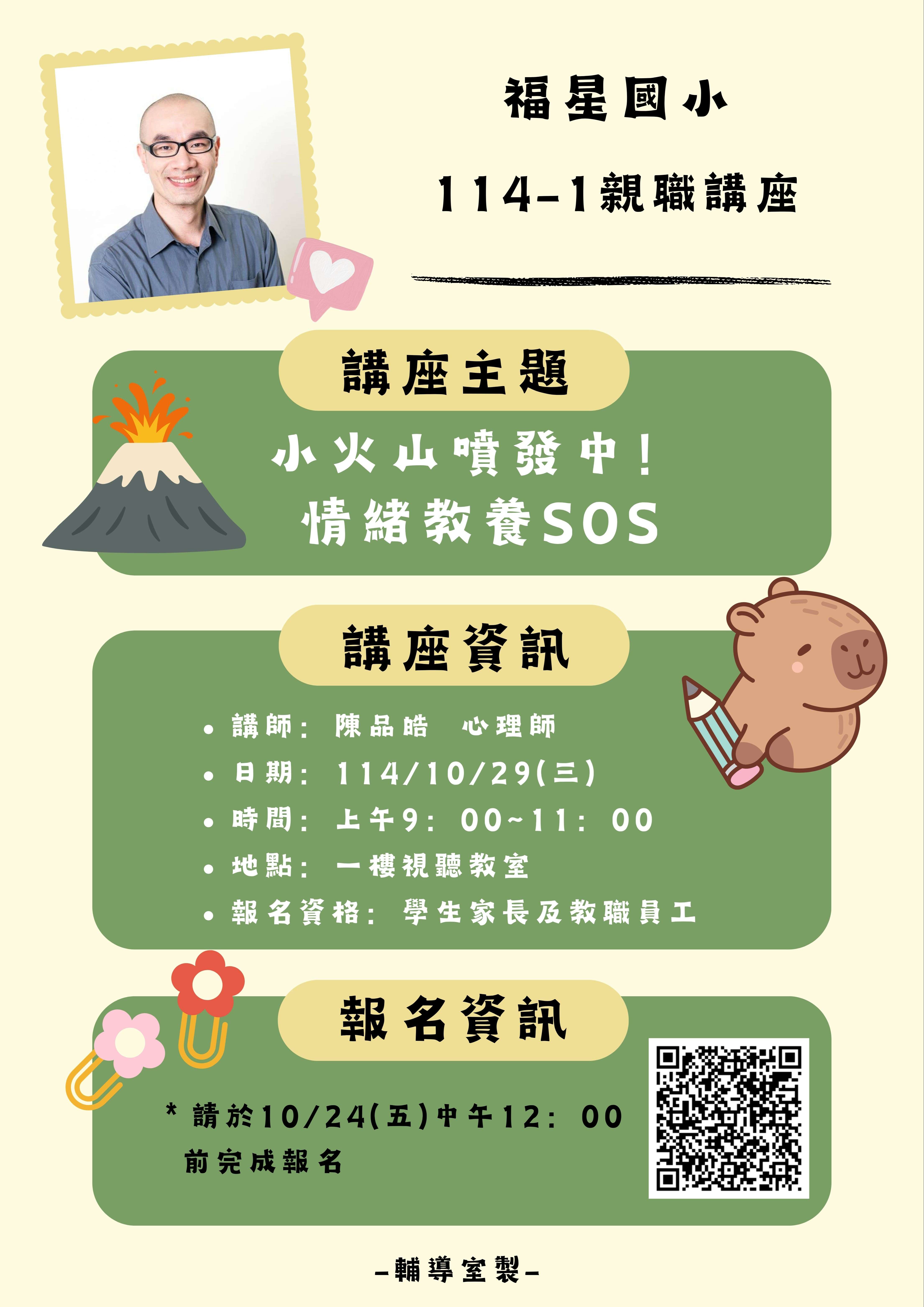 一、依據臺北市萬華區福星國民小學輔導室114學年度工作計畫辦理。